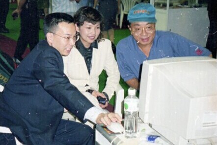 不知道大家是否还记得,十多年前,在阿里巴巴刚刚起步,百度还没影的时候,中国第一家高尔夫门户网--高尔夫热线就已经诞生,这是由绿瑞董事长王继军先生创办的。这张照片摄于1998年的笋岗路体育馆,右边是时任香港立法会主席梁定邦先生,中间这位是香港小姐梁木楠女士,他们在聚精会神地看高尔夫热线。